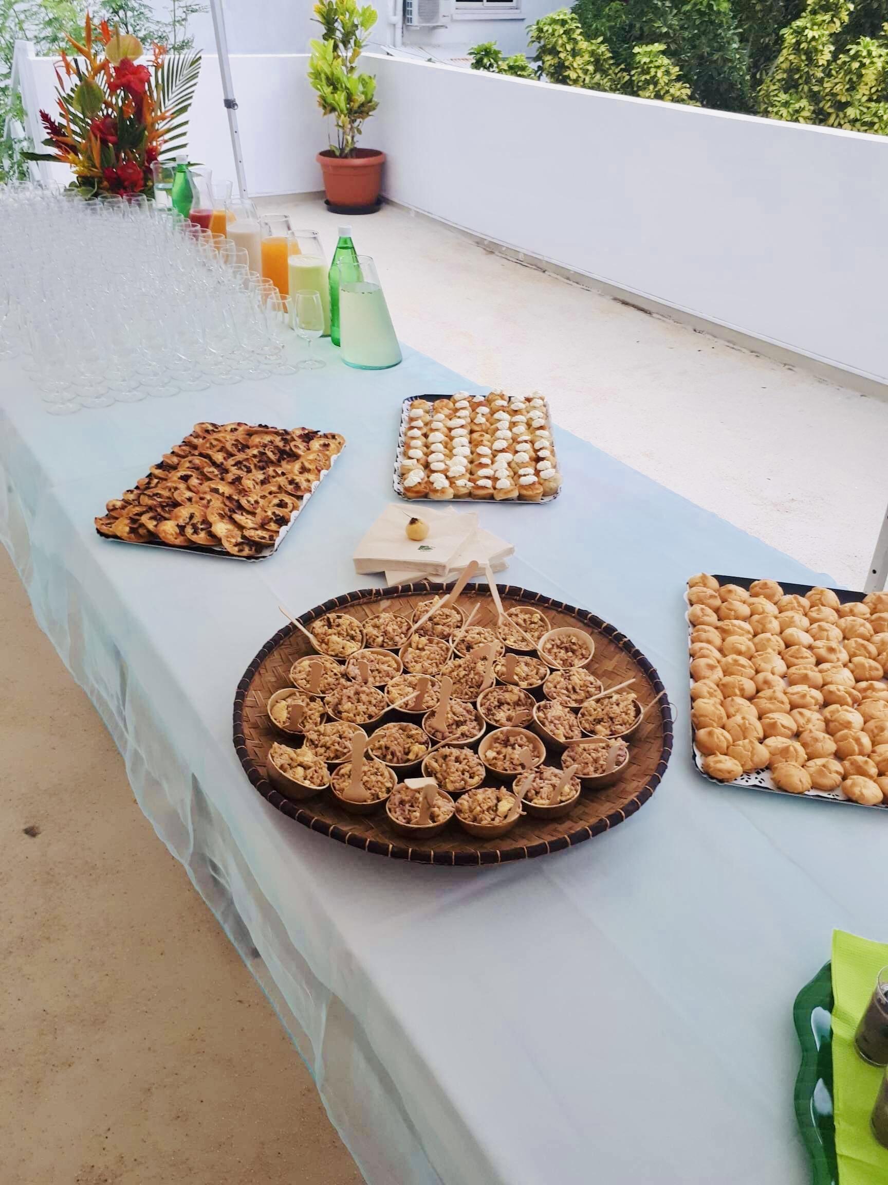 Organisation événementielle des buffets avec prestations traiteurs, personnel vacataire, fleuriste